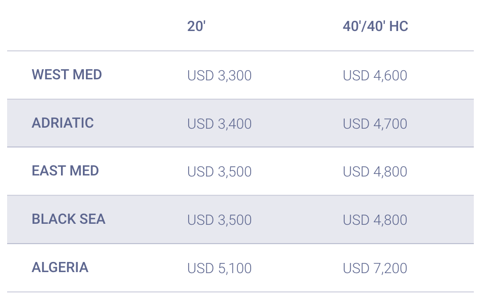 Hãng tàu CMA CGM thông báo điều chỉnh tăng giá cước FAK (Freight All Kind – giá cước áp dụng chung cho mọi loại hàng hóa) trên tuyến châu Á đi Địa Trung Hải & Bắc Phi.